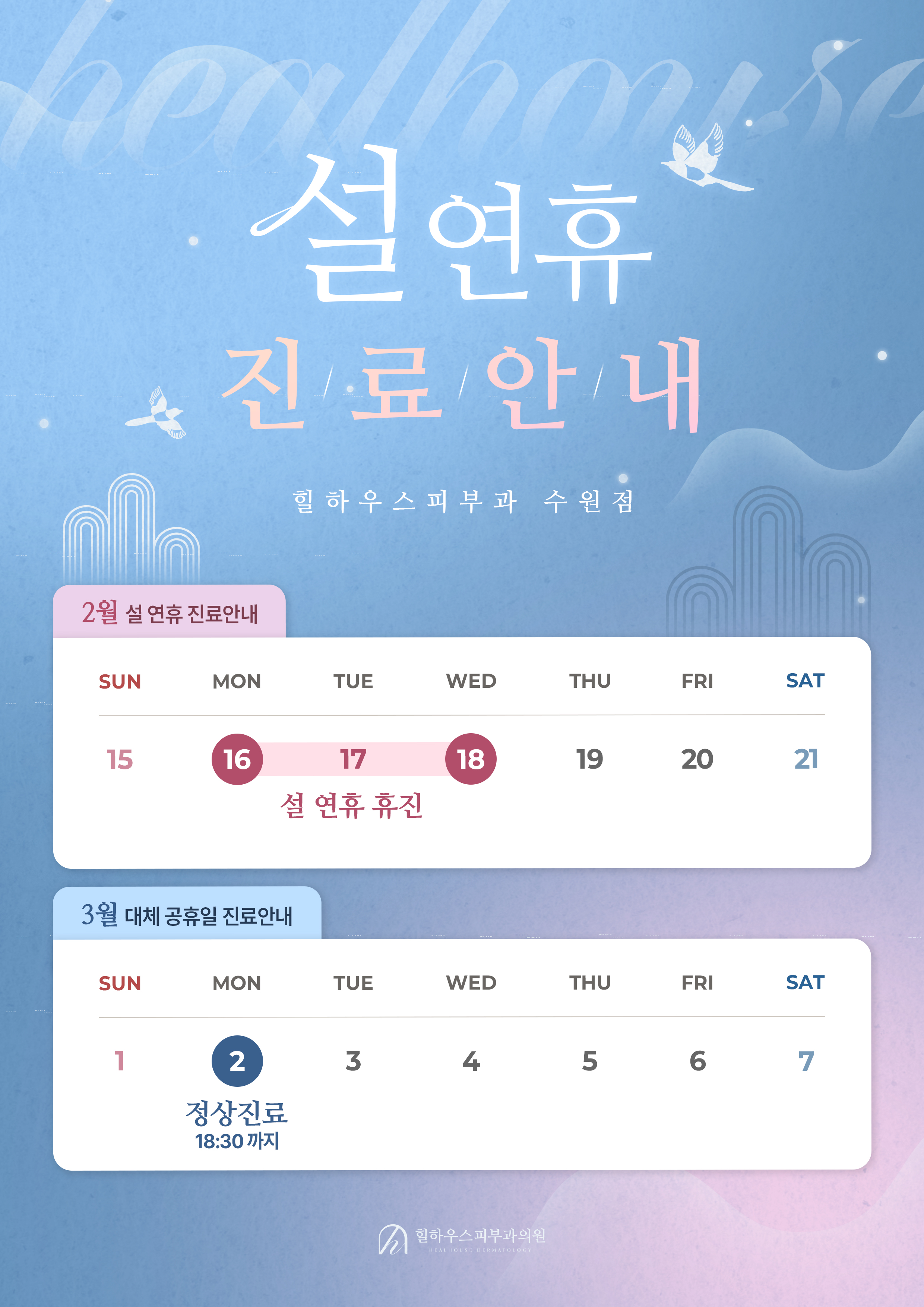힐하우스피부과 2026 2월 설 연휴 진료 안내